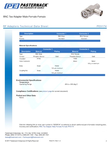 inventory and certifications: BNC Tee Adapter Male-Female-Female PE9174