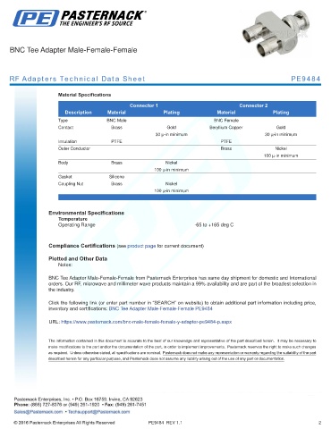 RF Adapters Technical Data Sheet PE9484