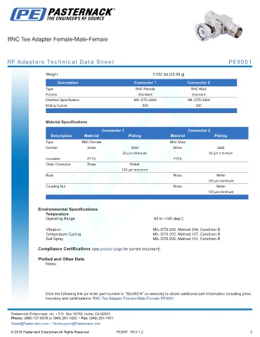 RF Adapters Technical Data Sheet PE9001