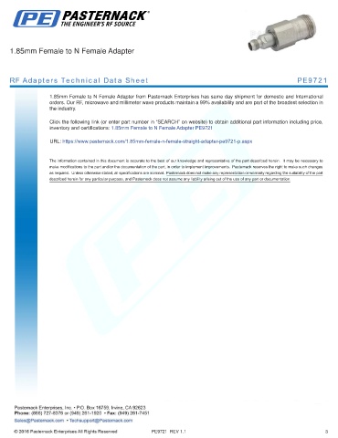 RF Adapters Technical Data Sheet PE9721