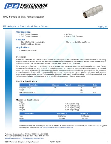 RF Adapters Technical Data Sheet PE9084