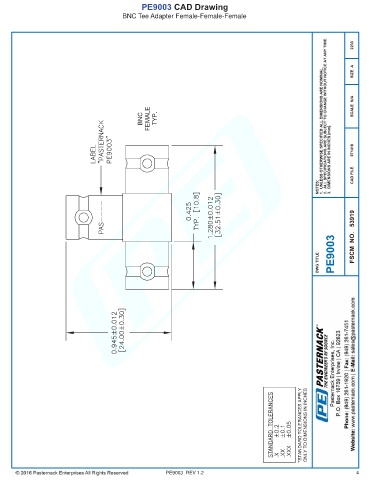 PE9003 CAD Drawing BNC Tee Adapter Female-Female-Female PE9003 REV 1.2 4