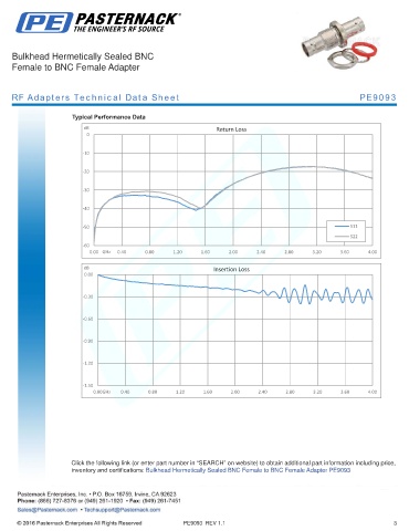 inventory and certifications: Bulkhead Hermetically Sealed BNC Female to BNC Female Adapter PE9093