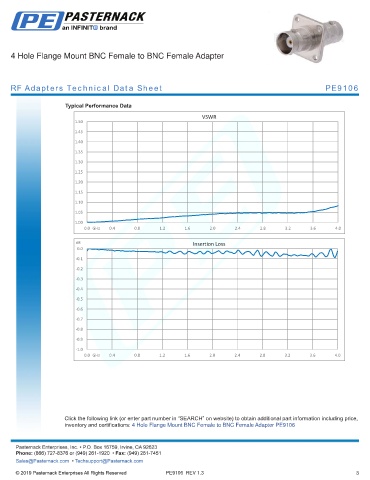 any representation or warranty regarding the suitability of the part described herein for any particular purpose, and Pasternack does not assume any liability arising out of the use of any part or documentation.