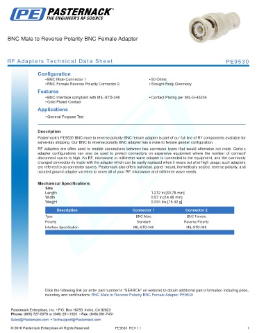 RF Adapters Technical Data Sheet PE9530