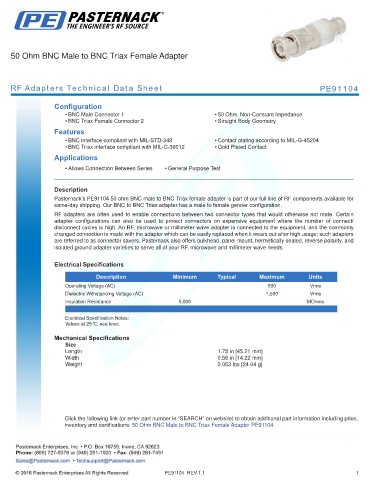 RF Adapters Technical Data Sheet PE91104