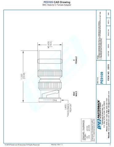 PE9109 CAD Drawing BNC Male to C Female Adapter PE9109 REV 1.1 3