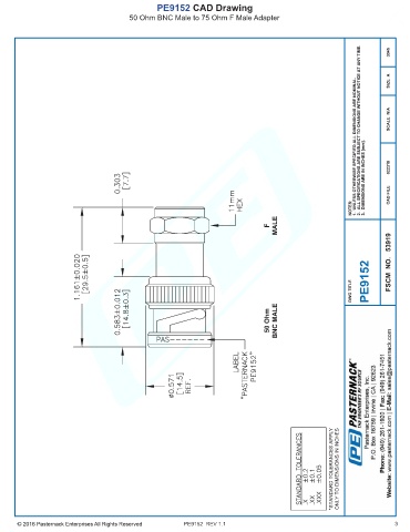 PE9152 CAD Drawing 50 Ohm BNC Male to 75 Ohm F Male Adapter PE9152 REV 1.1 3