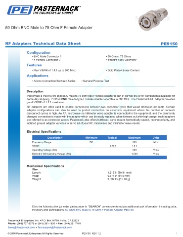 RF Adapters Technical Data Sheet PE9150