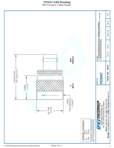 PE9087 CAD Drawing BNC Female to C Male Adapter PE9087 REV 1.1 4