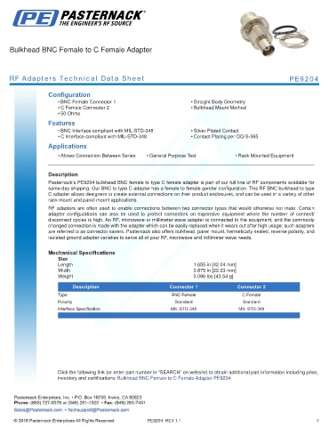 RF Adapters Technical Data Sheet PE9204