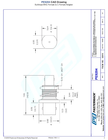 PE9204 CAD Drawing Bulkhead BNC Female to C Female Adapter PE9204 REV 1.1 3