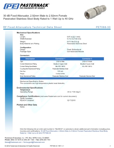 inventory and certifications: 30 dB Fixed Attenuator, 2.92mm Male to 2.92mm Female Passivated Stainless Steel Body