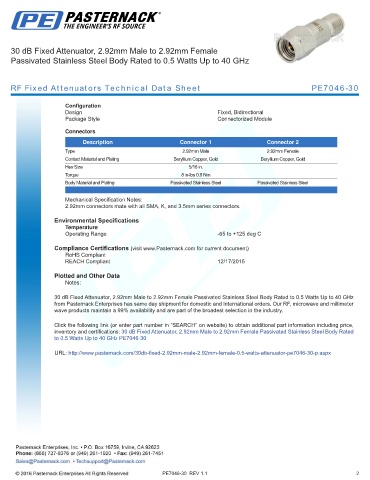 URL: http://www.pasternack.com/30db-fixed-2.92mm-male-2.92mm-female-0.5-watts-attenuator-pe7046-30-p.aspx