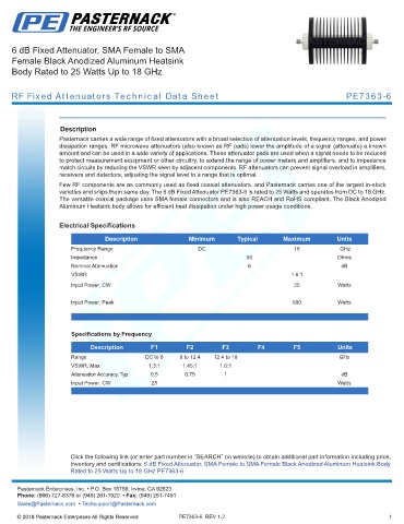 RF Fixed Attenuators Technical Data Sheet PE7363-6