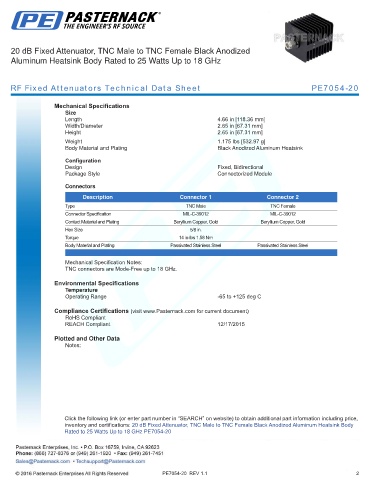 RF Fixed Attenuators Technical Data Sheet PE7054-20