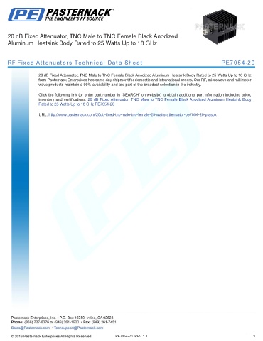 URL: http://www.pasternack.com/20db-fixed-tnc-male-tnc-female-25-watts-attenuator-pe7054-20-p.aspx