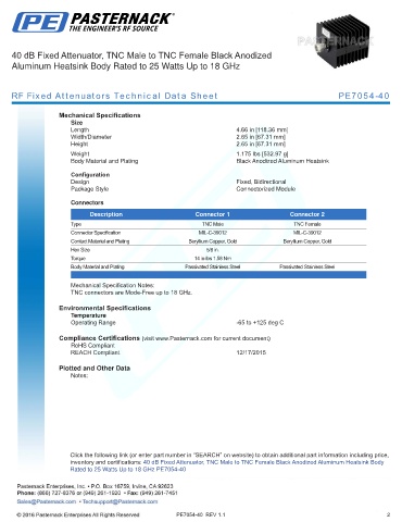 RF Fixed Attenuators Technical Data Sheet PE7054-40