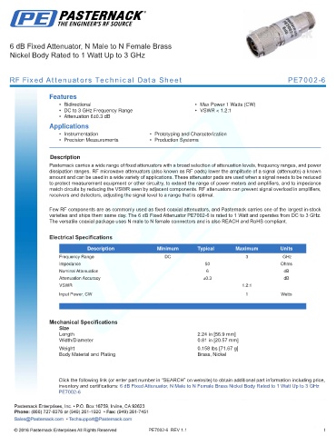 RF Fixed Attenuators Technical Data Sheet PE7002-6