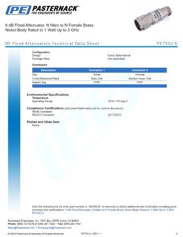 RF Fixed Attenuators Technical Data Sheet PE7002-6