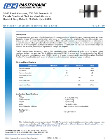 RF Fixed Attenuators Technical Data Sheet PE7321-50