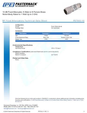 RF Fixed Attenuators Technical Data Sheet PE7002-10