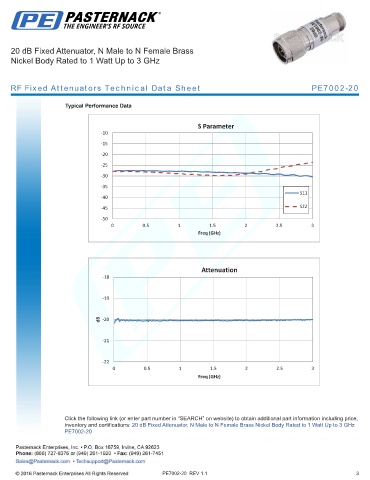 RF Fixed Attenuators Technical Data Sheet PE7002-20