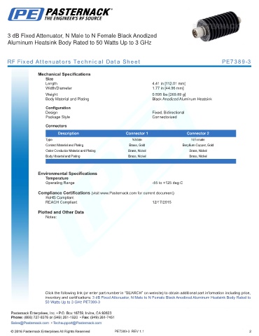 RF Fixed Attenuators Technical Data Sheet PE7389-3