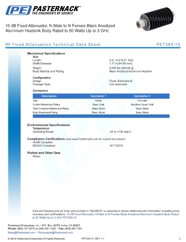 RF Fixed Attenuators Technical Data Sheet PE7389-10