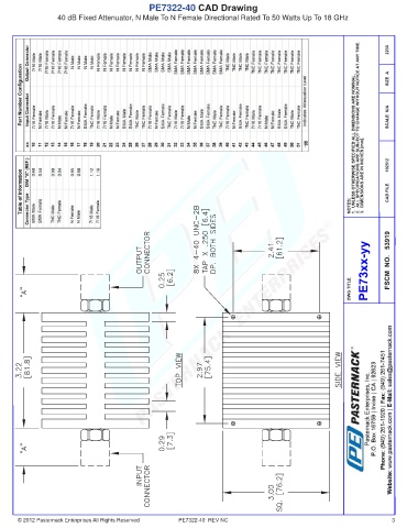 PE7322-40 CAD Drawing 40 dB Fixed Attenuator, N Male To N Female Directional Rated To 50 Watts Up To 18 GHz © 2012 Pasternack Enterprises All Rights Reserved PE7322-40 REV NC 3