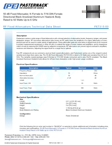RF Fixed Attenuators Technical Data Sheet PE7315-50