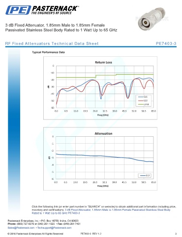 RF Fixed Attenuators Technical Data Sheet PE7403-3