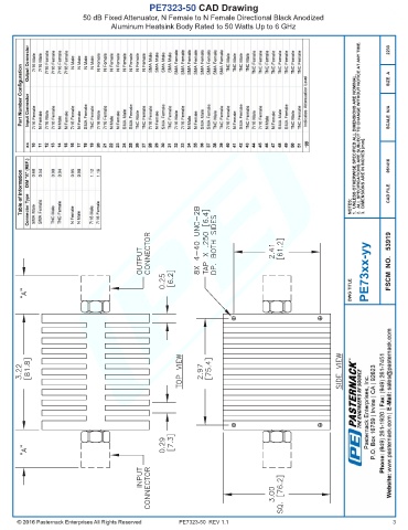 PE7323-50 CAD Drawing 50 dB Fixed Attenuator, N Female to N Female Directional Black Anodized Aluminum Heatsink Body Rated to 50 Watts Up to 6 GHz PE7323-50 REV 1.1 3