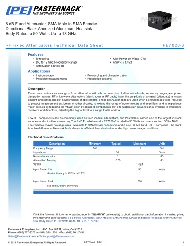 RF Fixed Attenuators Technical Data Sheet PE7020-6