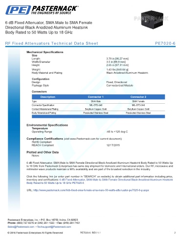 RF Fixed Attenuators Technical Data Sheet PE7020-6