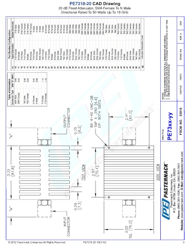 PE7318-20 CAD Drawing 20 dB Fixed Attenuator, SMA Female To N Male Directional Rated To 50 Watts Up To 18 GHz © 2012 Pasternack Enterprises All Rights Reserved PE7318-20 REV NC 3