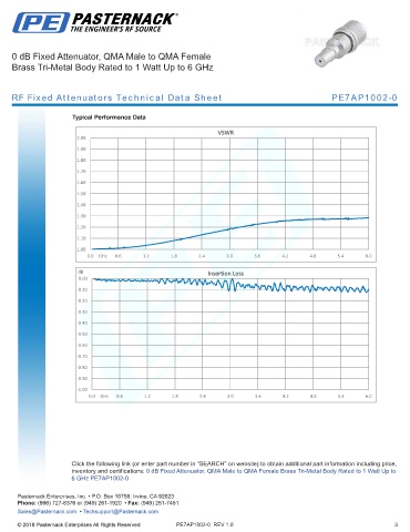 any representation or warranty regarding the suitability of the part described herein for any particular purpose, and Pasternack does not assume any liability arising out of the use of any part or documentation.
