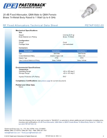 RF Fixed Attenuators Technical Data Sheet PE7AP1002-20