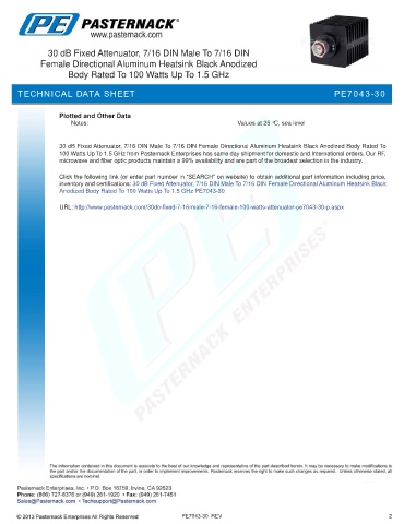URL: http://www.pasternack.com/30db-fixed-7-16-male-7-16-female-100-watts-attenuator-pe7043-30-p.aspx