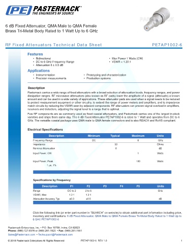 RF Fixed Attenuators Technical Data Sheet PE7AP1002-6