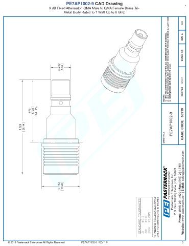 any representation or warranty regarding the suitability of the part described herein for any particular purpose, and Pasternack does not assume any liability arising out of the use of any part or documentation.