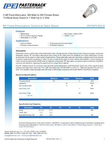 RF Fixed Attenuators Technical Data Sheet PE7AP1000-0