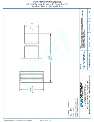 any representation or warranty regarding the suitability of the part described herein for any particular purpose, and Pasternack does not assume any liability arising out of the use of any part or documentation.
