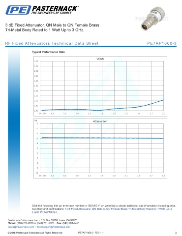 RF Fixed Attenuators Technical Data Sheet PE7AP1000-3