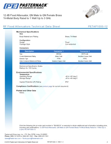 RF Fixed Attenuators Technical Data Sheet PE7AP1000-12
