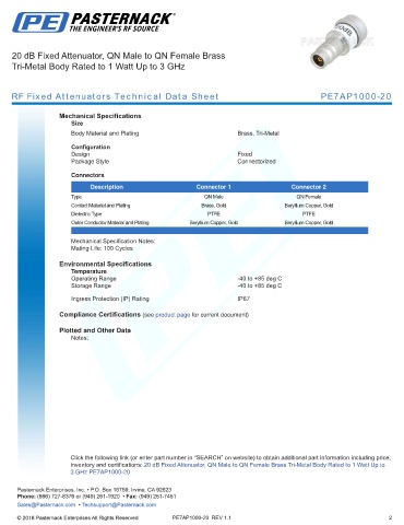 RF Fixed Attenuators Technical Data Sheet PE7AP1000-20