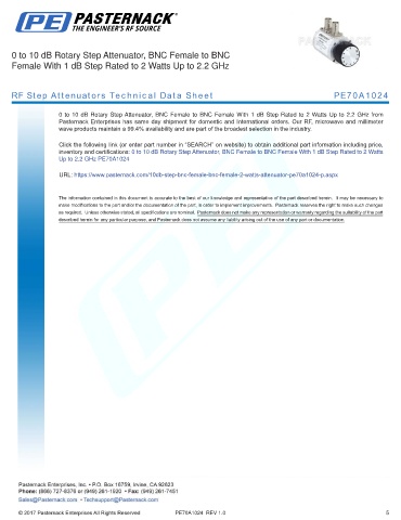 RF Step Attenuators Technical Data Sheet PE70A1024