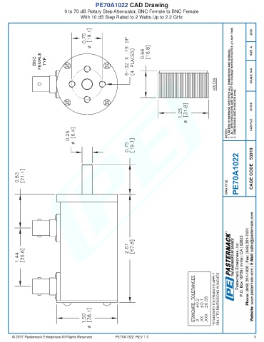 PE70A1022 CAD Drawing 0 to 70 dB Rotary Step Attenuator, BNC Female to BNC Female With 10 dB Step Rated to 2 Watts Up to 2.2 GHz PE70A1022 REV 1.0 5