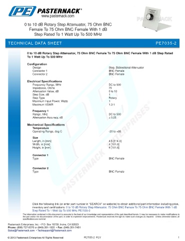 inventory and certifications: 0 to 10 dB Rotary Step Attenuator, 75 Ohm BNC Female To 75 Ohm BNC Female With 1 dB