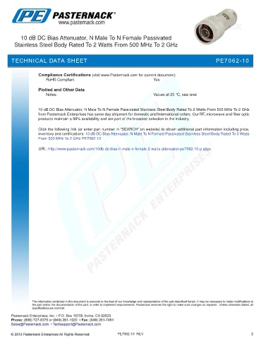 URL: http://www.pasternack.com/10db-dc-bias-n-male-n-female-2-watts-attenuator-pe7062-10-p.aspx